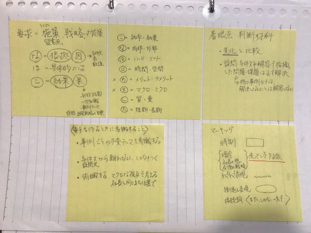 例えば、読む・考える・書くときには、切り口の外に「なほこ」を常に意識して解答骨子を作っていました。
