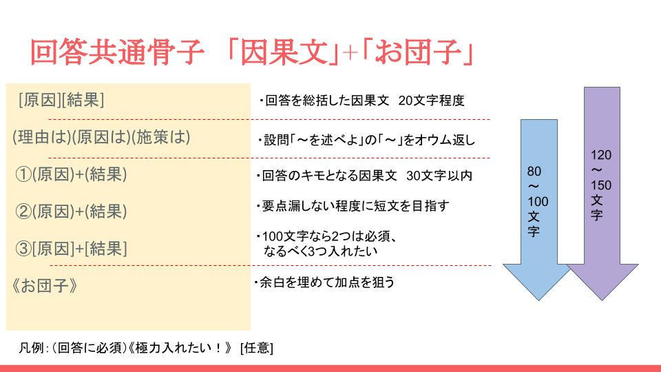 なぜなら150文字を埋めきるネタは、2,300文字強の問題文に全て準備されていることは稀で、積極的に知識をミックスしていかなければ寂しい回答の出来上がりです。
