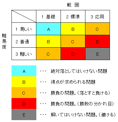 重要なポイントは、その中間にある”勝負問題”を見極め、その問題に時間を割いて得点しライバルに差をつける事です。