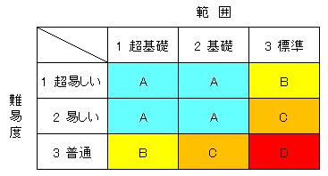 ABランク・・・難易度が易しく、出題範囲が基礎的な問題は確実に得点が求められます。ここで外したらマズい。