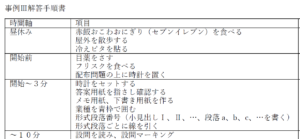 今回は、試験時間前の休憩時間まで含めた手順書作成を提案させていただきました。ご参考いただき、是非2次試験では心の平静を保って、全力を出していただければと思います。なお、皆さんがもし、冷えピタを導入されるのであれば、手順書には是非「冷えピタをはがす」も記載することをお薦めいたします。