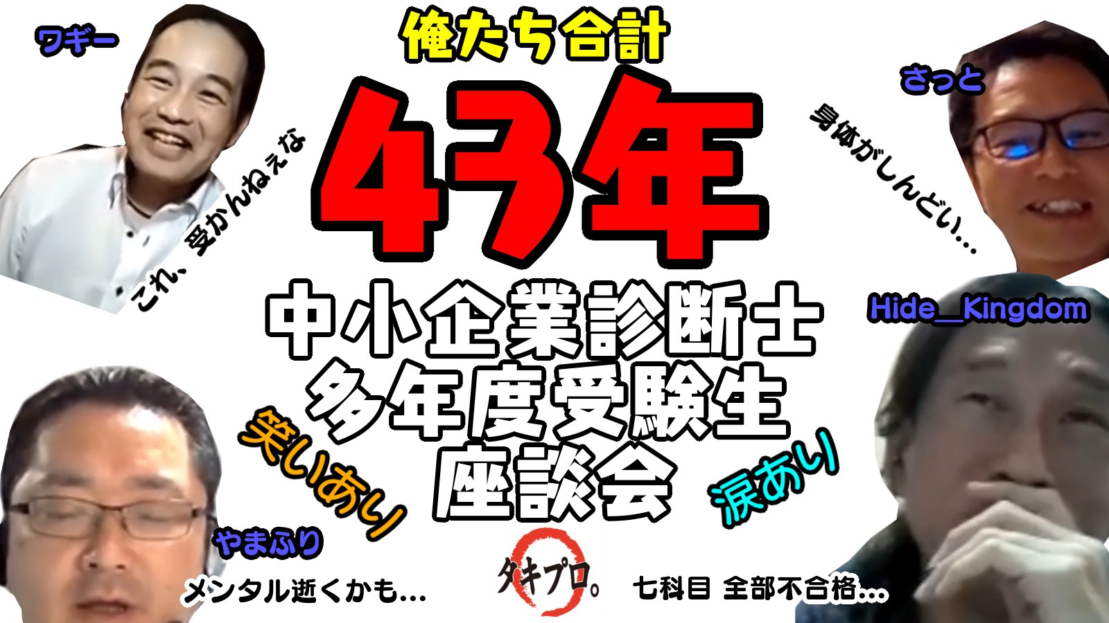 診断士合格までに10年以上かかったタキプロ(TKP)超多年度生のアイドル(おじさん)グループ4人組!オレ達、合格までに4人で合計43年かかったんで。