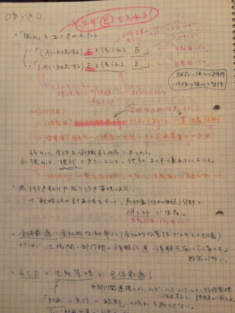 また、上記のファイナルノートには、切り口やキーワード、自分なりの解答のノウハウのようなもののほか、試験当日に頭が真っ白になってしまった場合の対処法なども、想定して書き込んでおきました。