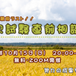 自己採点で合格点を確保できている方はともかく、若干足りなかった方も得点修正により、合格の可能性がありますので、1次試験の合格発表まではあきらめないでください。