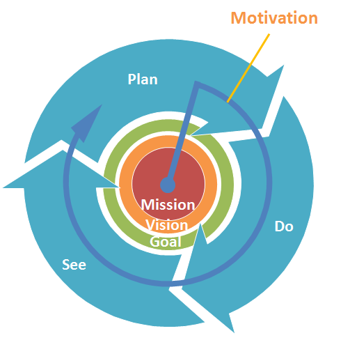 設定したMission、Vision、Goalに基づきAction(Plan,Do,See)をDriveする(回し続ける)ための動機づけのエネルギーです。