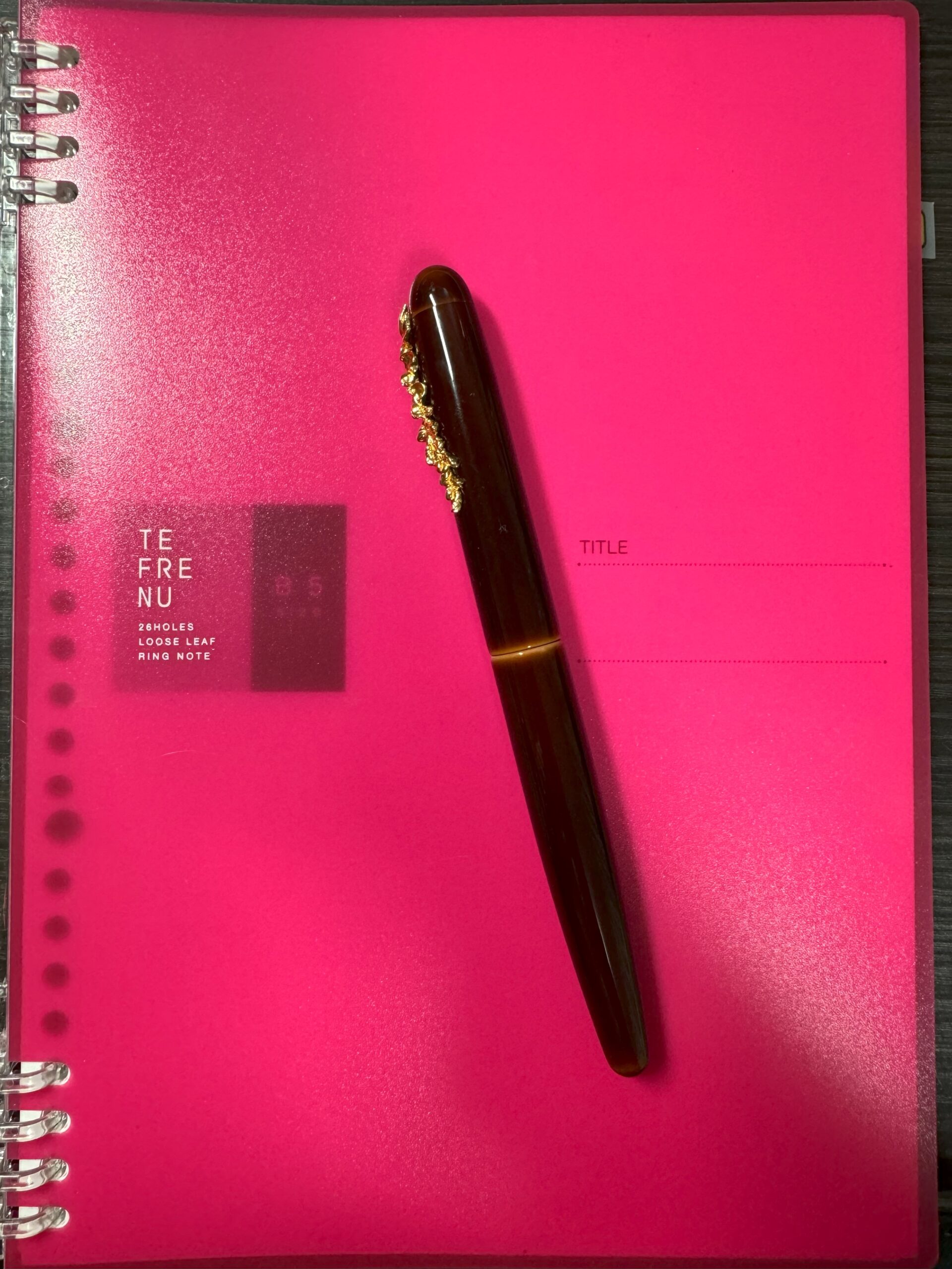 ちなみに、こちらは使っていたノート(ルーズリーフを綴じるタイプ)と万年筆です。