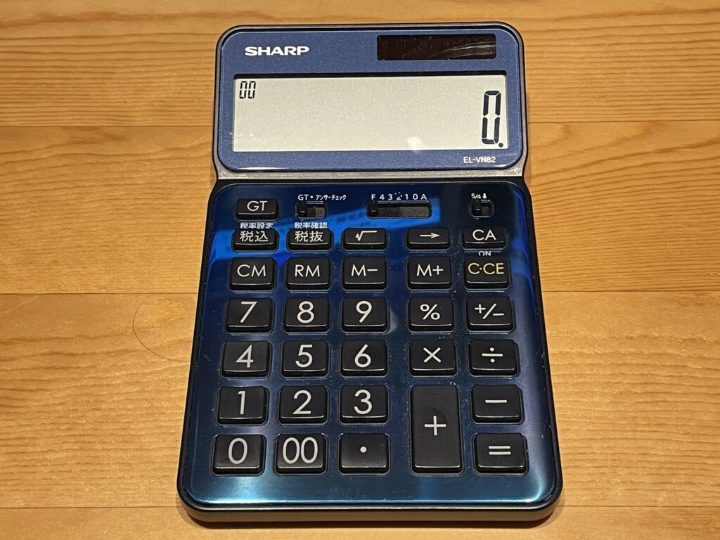 理由は、左手で電卓を操作するときに、クリアキーの位置が数字と隣接していないため、誤爆が少ないだろうと思ったからです(カシオだと左下のあたりにクリアキーが来ます)。