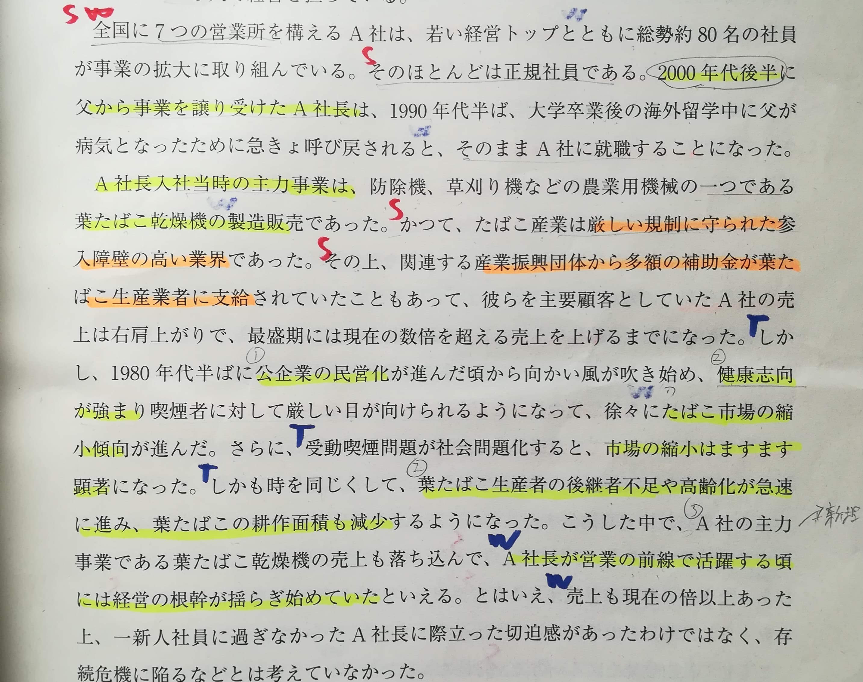 ・SWOT:シャーペンで該当文節の左上に対応するアルファベットを記載