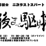 2022年10月2日 / 最終更新日時 : 2022年9月29日 ユーザタキプロ 1-2.タキプロセミナー 【10月16日】二次ラストスパートセミナを開催します!(タキブロ+ 号外)byもりけん 読者の皆様、いつもブログを読んでくださりありがとうございます。タキプロ13期のもりけんです。 今回の「タキブロ+」は、号外としてタキプロ10月セミナーの告知をさせていただきます!(「タキブロ+」って何?という方はこちらも […]