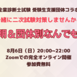 【告知】一緒に二次試験対策しませんか?受験生支援団体コラボ説明会・相談会を開催します!!【8月6日(日)】byタキプロ