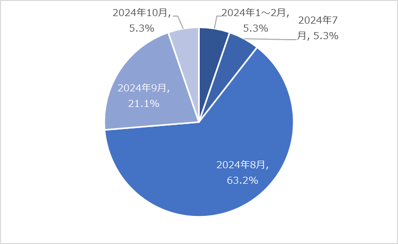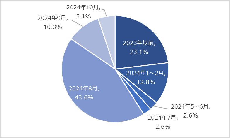 43.6%が2024年8月となっており、つまり1次試験が終了してからということになります。上記グラフをさらに受験回数1回の方に絞ったら以下のようになります。