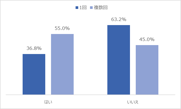 41%が模試を受けていました。さらに受験回数1回と複数回の方で比較すると以下のような結果となりました。